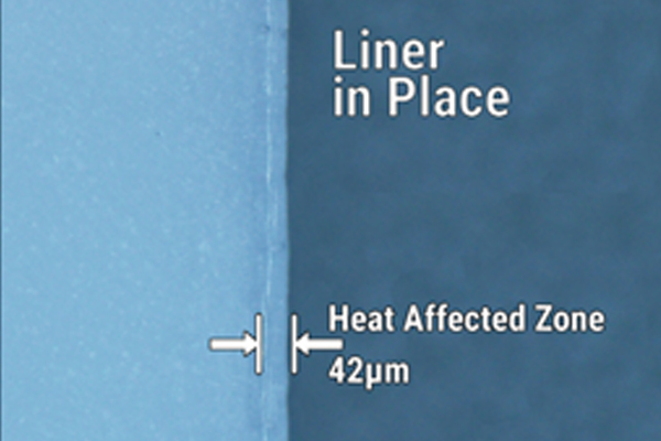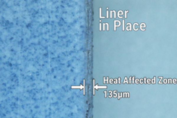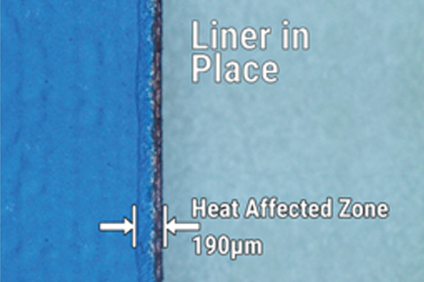 Microscopy view from the original ULS 5519 report showing the processed edge with liner in place.