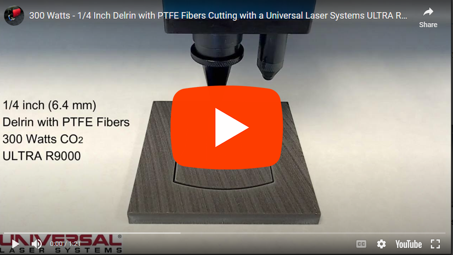 300 Watts - 1/4 Inch Delrin with PTFE Fibers Cutting with a Universal Laser Systems ULTRA R9000